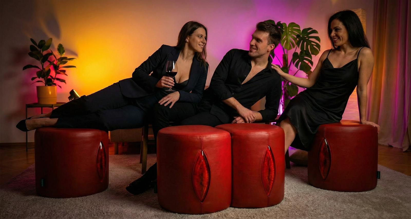 SeXCreto is a luxury modular design object conceived at the intersection of interior design and intimate pleasure. At first glance, it presents itself as a set of three elegant cylindrical poufs upholstered in premium eco-leather — refined, discreet, and perfectly at home in any sophisticated living space.